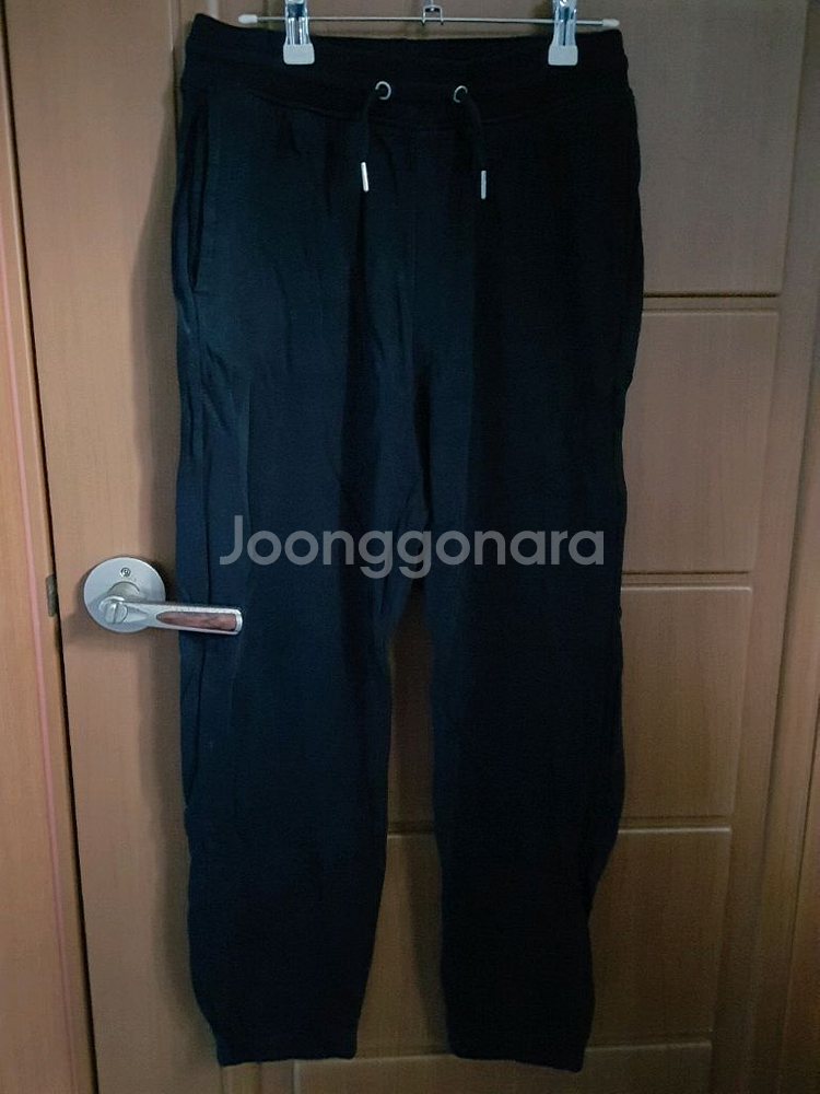 공용입니다 기본 디자인의 검정색 조거팬츠입니다. M사이즈이고, 끈으로 허리 조절 가능합니다. 순면인데 두께감 있는 조거팬츠 요즘에 잘 안 나오죠 소재 좋아요^^ 허리:34/허벅지:27.5/총장:93