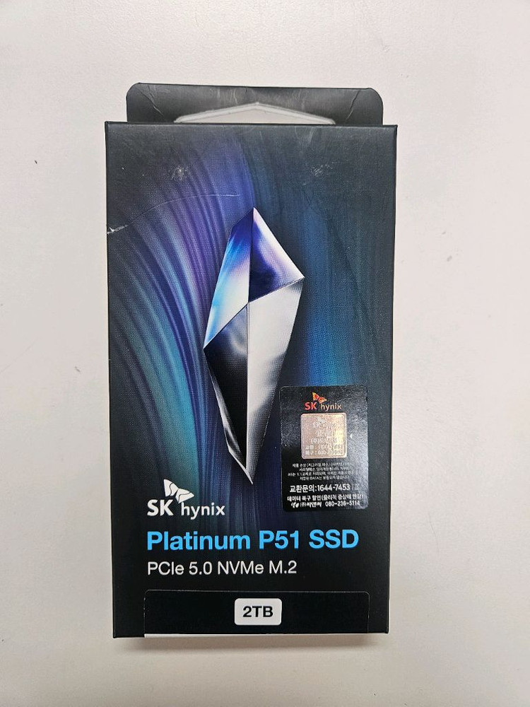 SK하이닉스 P51 NVME 2TB 사용시간 10시간내외 총쓰기량 20GB 판매수량 2개 각각 56만원 배송비 포함이며 우체국택배로 안전하게 포장해서 발송드립니다.