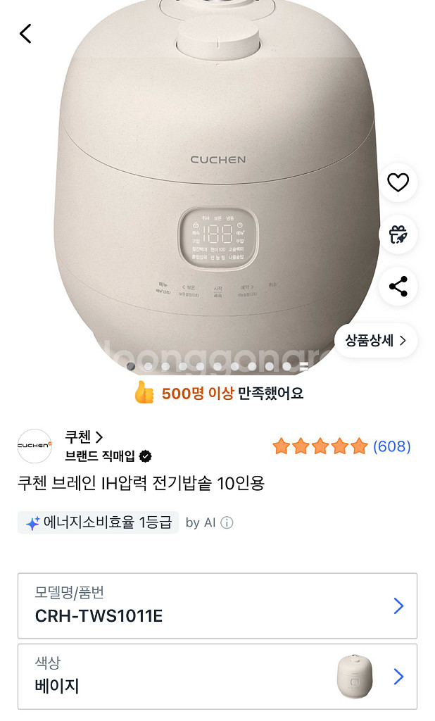 모델명 CRH-TWS1011E 10인용 압력밥솥 새상품입니다. 주소 알려주시면 쿠팡에서 직배송 해드립니다!