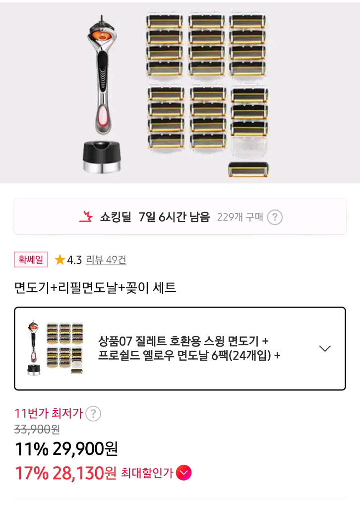 질레트 스윙 면도기랑 프로쉴드 옐로우 면도날 5팩(20개입) 새제품입니다 면도날은 피부 자극은 줄이면서 깔끔한 면도를 도와줍니다 *호환용* 직거래만 합니다