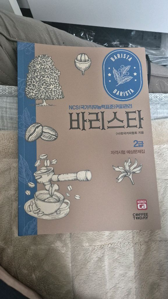 바리스타 2급 자격증을 위한 새 책 판매합니다. 한국커피협회에서 지은 책으로, 자격시험 예상문제집입니다. 바리스타 시험 준비하시는 분들께 추천드려요! 25년구매 정가17000원 일반택배4000원추가 씨유끼리택배2700원추가 ㅇㅣㅇ 3ㅣ37. 7411문자주세요