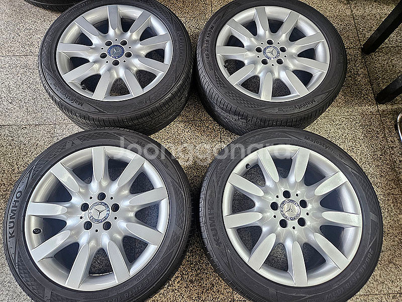 벤츠 W221 S500 정품 18인치 휠타이어 셋트 입니다 중고차 구입 후 바로 탈거 한 제품 입니다 휠상태는 휠기스 없이 아주 깨끗한 상태 입니다 전체도장 되서 깨끗한 상태 인듯 보여집니다 휠제원은 18인치 8.5J +43 5홀 PCD 112 네개 동일 제원 입니다 휠캡포함 이구요 TPMS 센서는 본인 차량 꺼 사용하시면 됩니다 타이어는 금호타이어 최고급형 마제스티솔루스9 입니다 사이즈는 255-45-18 네개 동일사이즈 입니다 상태는 두개 80% 이상 두개 70%이상 됩니다 가격은 휠타이어 네개 모두해서 60만원 생각합니다 사진은 실사진이구요 보시구 궁금하신점 연락주세요 010-8909-6207 입니다 거래지역은 서울 성동구 용답동 타지역은 택배거래합니다 현재 샵에 보관 중입니다 S350 S400 S450 S500 S550 S600 W140 W220