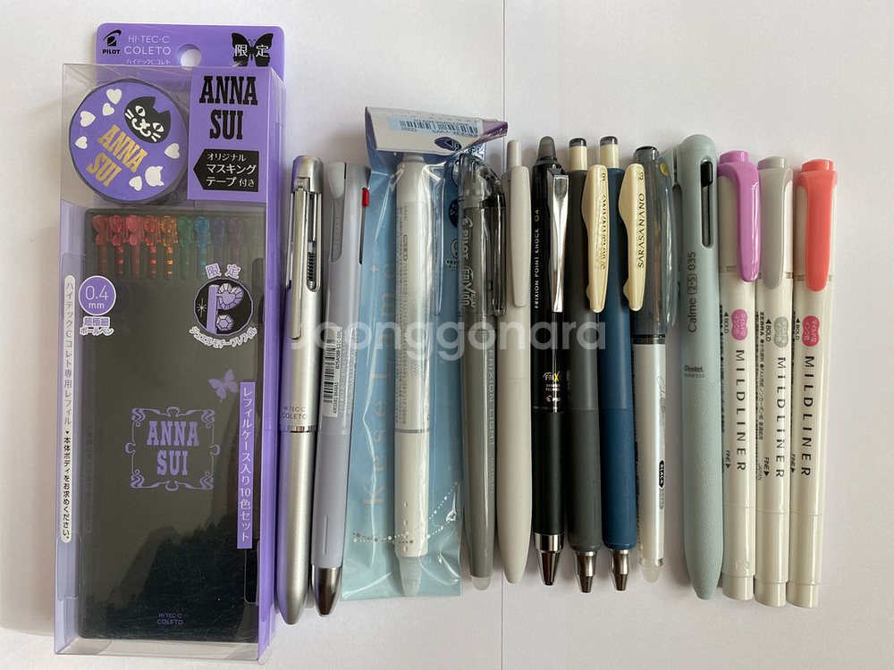 유니볼원 제트스트림 펜텔 볼펜 파이롯트 마일드라이너 사라사나노 멀티펜 콜레토 등의 필기구와 다이소 바인더링 연습장 만년필종이 일괄판매합니다. 상세컨디션 안 적힌 건 집에서 펜 테스트만 한 것들입니다. 대부분 테스트 후 손이 안 가서 따로 빼둔 펜이라 상태 깔끔합니다. 펜은 모두 세워서 보관했습니다. 펜과 종이 일괄 정리합니다. 계좌이체 택포 5만원→ 4.3만 안심결제 배송비 별도로 바로 결제하시면 됩니다. 기타질문은 구매 전 채팅 부탁드립니다. ㅡㅡㅡㅡㅡㅡㅡㅡㅡㅡㅡ <펜> -유니볼원 0.38 디즈니&토이스토리 네모필라블루 -유니볼원 0.38 디즈니&토이스토리 세서미그레이 -유니볼원 0.38 나이트카페 블랙베리소르베 -유니볼원 0.38 나이트카페 밀크티 -유니볼원 0.38 나이트카페 체리퓨레 -제트스트림 라이트터치 07 쉘화이트 -제브라 사라사 나노 0.3 그레이 -제브라 사라사 나노 0.3 블루 그레이 -파이롯트 케세라메 실버(지워지는 반짝이펜) -파이롯트 일밀리 투컬러 펜 블랙- 그레이 0.4 (지우면 색 바뀌는 펜) -파이롯트 프릭션 포인트 노크 04 블랙 사자마자 a4 한 장 정도 썼습니다. <형광펜> -제브라 마일드라이너 마젠타 -제브라 마일드라이너 그레이 -제브라 마일드라이너 코랄핑크 -파이롯트 프릭션 형광펜 그레이 (그레이스케일 한정판 - 다크그레이) <멀티펜> -파이롯트 하이테크 c 콜레토 1000 단순개봉, 개봉만 하고 안 썼습니다. -파이롯트 하이테크 c 콜레토 안나수이 콜라보 10색 한정 마스킹테이프세트 (하트&보석모양) 검정색 리필심만 다른 곳에 사용, 나머지 색은 모두 미개봉 미사용입니다. -제브라 블렌 2+1 볼펜 멀티펜 사자마자 a4 한 장 정도 썼고 잉크 5cm 정도 남아있습니다. -펜텔 카르므 calme 라이트블루 2+1 멀티펜 035 빈 케이스 깡통 (리필심, 샤프리필 X) <종이> -다이소 바인더링 유선 노트 A5 & B5 종이 200장 이상 버섯노트 타공 링과 커버 없이 종이만 판매합니다. 처음부터 측면 구김 약간 있었고 종이 빼는 과정에서 약간 구김 생긴 곳도 있으나 연습장이나 메모장 용도로 충분히 사용 가능합니다. b5 77매 (3장 사용), a5 158매 (2장 사용)