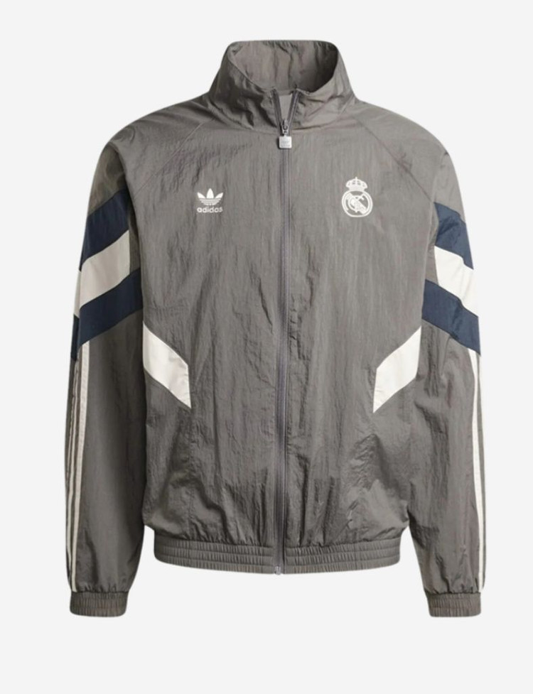 아디다스 레알 마드리드 트랙 탑입니다 회색 바탕에 아디다스 로고와 레알 마드리드 엠블럼이 포인트로 디자인되어 있습니다 스포티하면서도 스타일리시하게 연출하기 좋습니다 실착 5번 언저리 정도라서 깨끗합니다 사이즈는 XL입니다