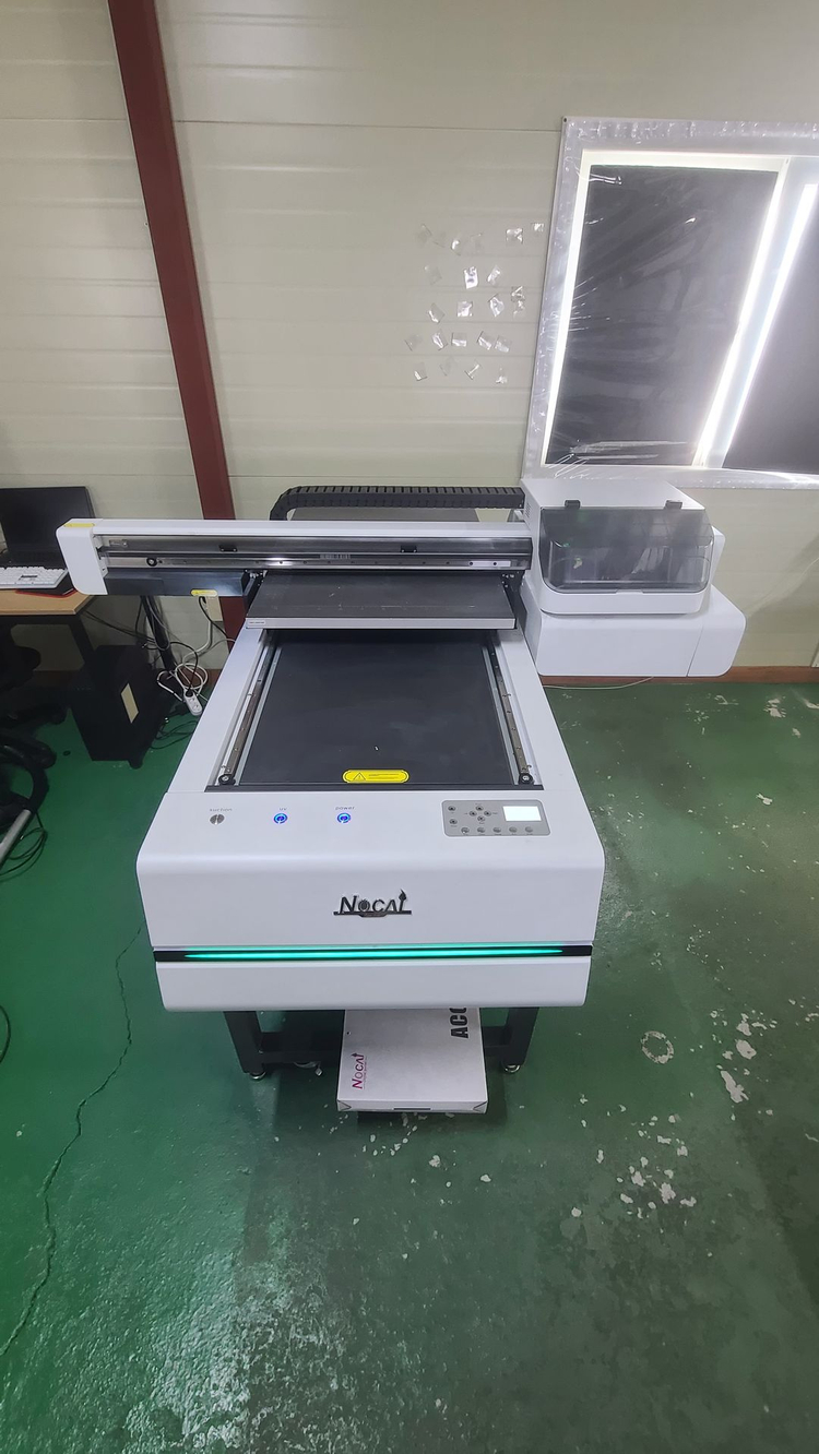 1. 모델명 : NC-UV0609 PE3 (헤드가 3개 있는 고급모델) 2. 구매일 : 2022년 10월 (3년 남짓) 3. 구매금액 : 2,000만원 이상 ※사용량이 많지 않습니다. 비교적 깨끗하게 사용한 제품이며 헤드는 2025년 8월경에 갈았고, 조금씩 작업한 제품입니다. 3개헤드 1) C,M,Y,K,Lc,Lm(칼라) 2) W(화이트) 3) V(바니시) 바니시까지 사용할 수 있는 모델입니다.