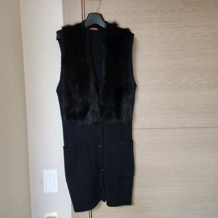 개인정보(거래정보)를 주고받는 행위는 사기에 노출될 수 있으므로 즉시 중고나라로 신고해 주세요여우털이 고급스러운 테레시아 울 니트 베스트입니다. 검정색상이고, 사이즈는 95입니다. 단추로 여닫는 형태입니다. 택포29000원 반값택배27000원 교환 환불 안됩니다