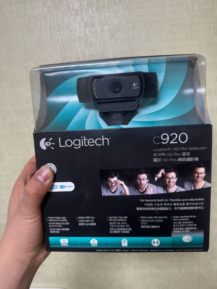 로지텍 C920 HD Pro 웹캠 미사용 제품입니다 - 풀 HD 1080p 화질로 선명한 영상 통화 및 녹화가 가능합니다 - 자동 초점 기능으로 항상 선명한 이미지를 제공합니다 - 듀얼 마이크가 내장되어 있어 깨끗한 음질로 대화할 수 있습니다 화상 회의나 온라인 수업에 유용합니다