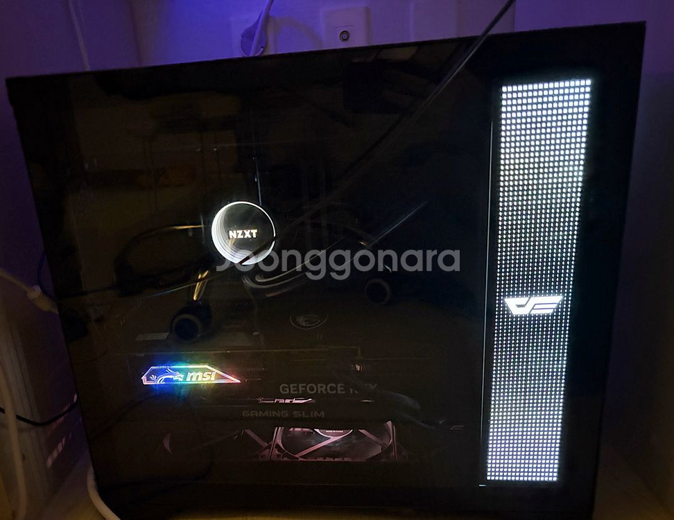 그래픽카드 = MSI RTX 4080 SUPER Gaming X Slim = 박스O CPU : i9 13900KF RAM : 커세어 벤젠스 DDR5 6000MHz CL30 32GB (16X2) = 박스O 메인보드 : AORUS ELITE Z790 파워 : NZXT PA-861B 1000W 22년 제조 10년 보증 케이스 : 다크 플레시 DS2000 쿨러 : NZXT 크라켄 3열 수냉 SSD : Samsung 990 PRO 1TB = 박스O HDD : 4TB 고사양 게이밍 본체 , 상태 매우 좋습니다 택배거래X 직거래만 합니다 서울 신림