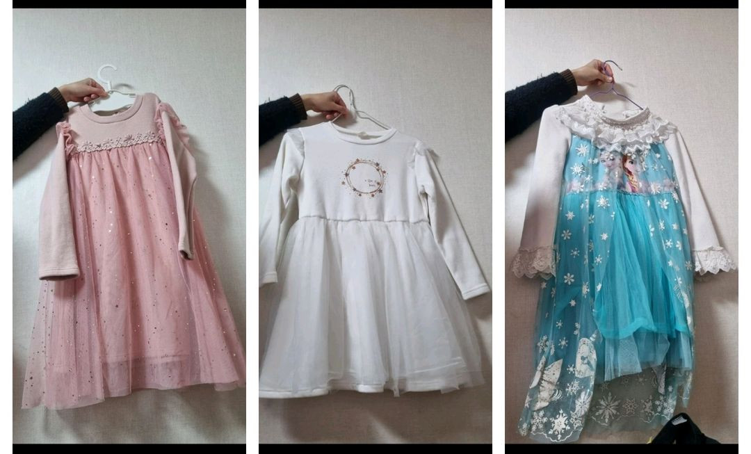 2만원 일괄 2번~4번 사진 엘사 원피스 130 사이즈 기모 입니다. 상의 레이스가 풍성해요 (4번사진이 작년 실착용샷) 5번~7번 사진 흰색 원피스 130 사이즈 기모입니다. 정가운데에 옅은 얼룩이 있습니다. (7번사진 참고) 8번~9번 사진 핑크 원피스 130 사이즈 기모입니다. 레이스에 스팽글? 반짝이가 셋중 제일 화려해요 세종류 다 약간의 보풀은 있지만 상태 좋은 편이고, 입으시는데는 문제는 없습니다. 한달사이 쑥 커서, 겨울동안 팔려고 가격 내립니다 * 택배비용은 4,500으로 써놨지만 반값택배의 경우 무게에 따라 금액이 달라집니다. 일반택배의 경우 금액이 비슷할겁니다. 🚫 환불 노우!! 🚫 반품 노우!! 🆗 쿨거래 오케이!! 🆗 반값택배 오케이!! (택배비는 구매자님 부담)