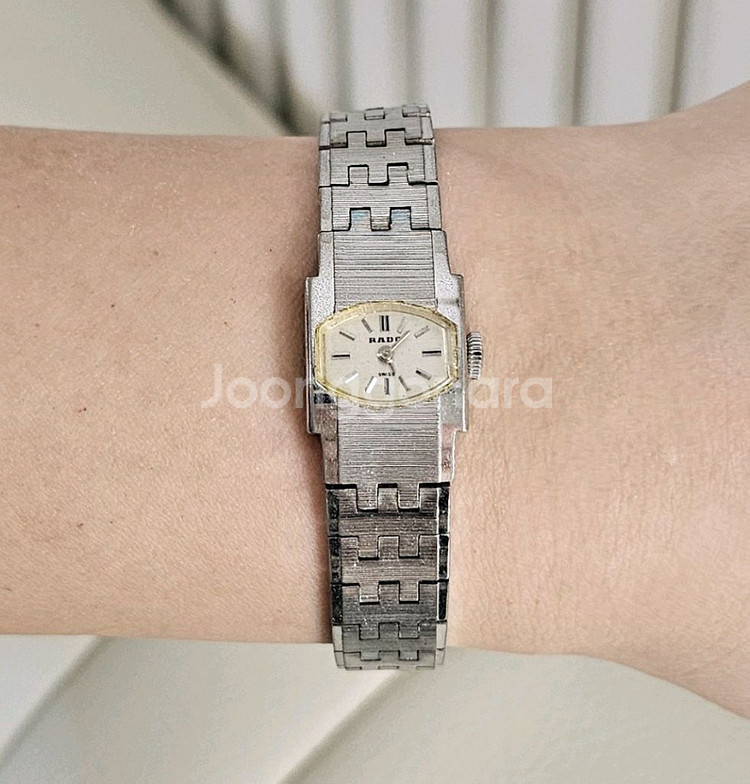 개인정보(거래정보)를 주고받는 행위는 사기에 노출될 수 있으므로 즉시 중고나라로 신고해 주세요정품 라도 빈티지 여성 오토매틱 시계입니다. 앤틱한 디자인이 매력 있습니다. 흔하지 않은 오토매틱상품이라 소장 가치 있습니다. 사용감 있고 용두감아 쓰는 오토매틱 시계입니다 정상작동합니다 단품이구요 본체가로 1.6cm 손목16.5cm