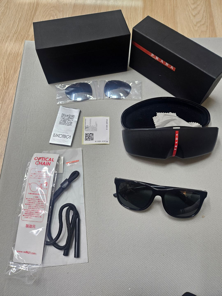 정품 프라다 선글라스(01U 06Y 03OF 빅사이즈 선글라스) 로 박스와 구성품이 모두 포함되어 있습니다. 유럽여행 가서 몇번 써보고 서랍에 박아뒀습니다. 클래식한 디자인으로 알도 크고 귀여워서 얼굴도 커버해줍니다. 새해맞이하면서 집안 물품 정리하려고 내놓습니다. 새상품가 30만원 이상입니다.