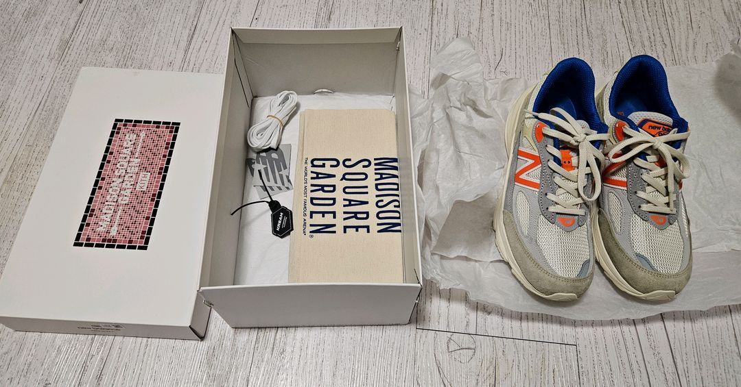 뉴발란스x키스x메디슨스퀘어가든 990v6 265사이즈 실착 1회이며 밑창빼고는 상태 매우 좋습니다 크림에서 구매했고 풀구성품입니다 반품 및 환불불가