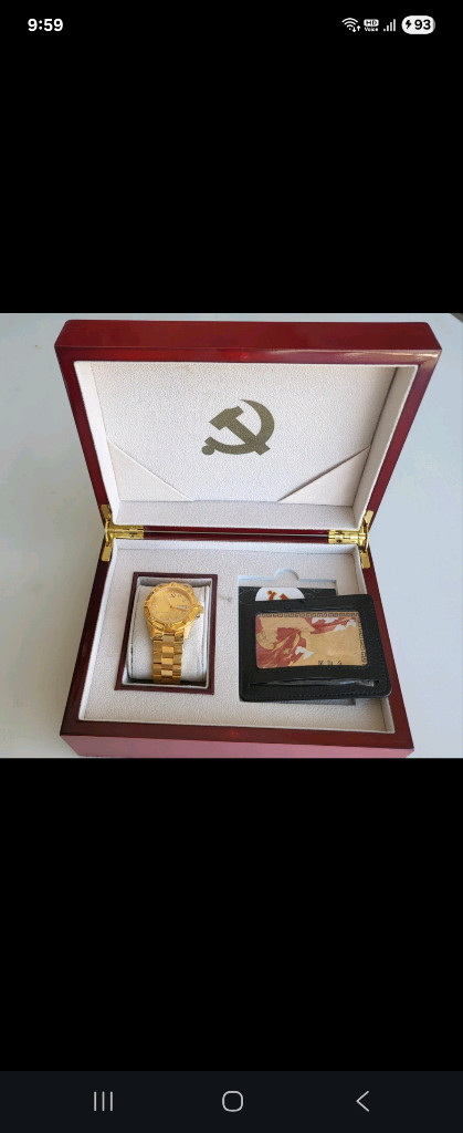 희귀한 수집 가치를 지닌 중국 중앙판공청(中共中央办公厅) 전용 기념 시계 판매합니다. 중국 현지에서도 구하기 어려운 특별 한정판(限量版) 모델로, 시계 수집가나 밀리터리/정치 굿즈 컬렉터분들께 추천드리는 제품입니다. [제품 상세 정보] 상태: 미착용 급 최상급 보존 상태 (기계식 무브먼트 작동 확인) 디자인: 전체 금장(Gold) 처리에 다이얼 내부와 박스에 중앙판공청 로고가 새겨져 있어 매우 고급스럽습니다. 구성품 (풀박스): 전용 우드 케이스 (로고 각인) 금장 기계식 시계 본체 공식 보증서 및 카드 전용 가죽 카드 지갑 특징: 기계식(Mechanical) 시계 특유의 묵직함과 정교함이 살아있으며, 뒷면이나 박스 곳곳에 한정판 표기 및 전용 문구가 기재되어 있습니다. [거래 방식] 고가의 수집품인 만큼 직접 상태 확인하시고 가져가시는 직거래를 선호합니다. 택배 거래 시에는 파손되지 않도록 완충 포장 꼼꼼히 하여 우체국 택배로 보내드립니다. 소장 가치가 매우 높은 제품입니다.