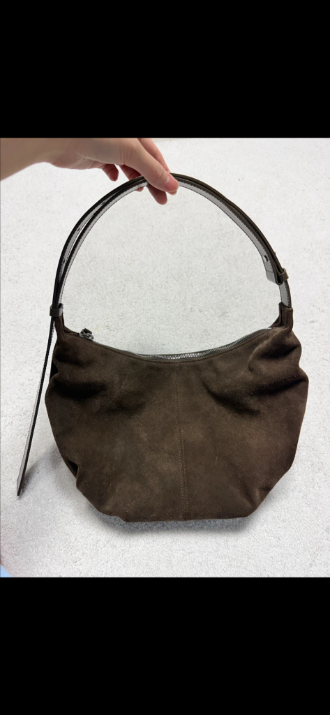 낫띵리튼 스웨이드 호보백입니다 부드러운 스웨이드 재질로 되어있고, 가벼워서 들고 다니기 편해요 내부 수납 공간도 넉넉해서 소지품 보관하기 좋습니다 깨끗하게 사용한 중고상품입니다