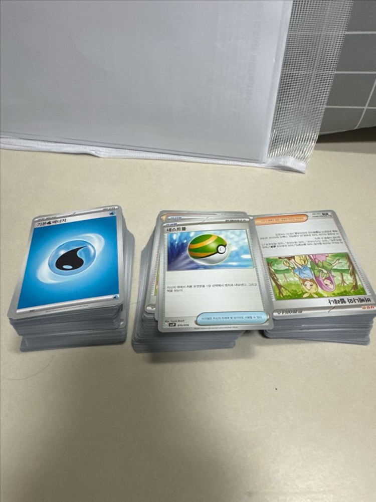 포켓몬 카드 에너지 카드 총 묶음입니다. 다양 합니다. 총 111장이고 사용하지 않아서 상태 좋습니다 포켓몬 카드 아이템 카드만 따로 모았고 네스트볼, 베베나와 헬레나 등 덱 필수 아이템 다수 포함 되어 있습니다. 촌 182 장입니다. 총 계 293장 일괄 처분 합니다.