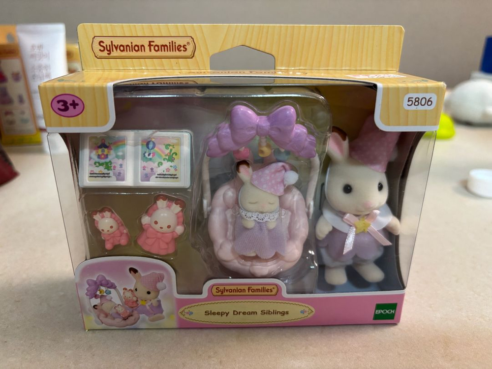 인형 가족 슬리피 드림 시리즈예요. 박스 상태가 깨끗하고 미개봉 새제품 같아 보여요. 귀여운 동물 인형들과 액세서리들이 들어있는 완전한 세트입니다.