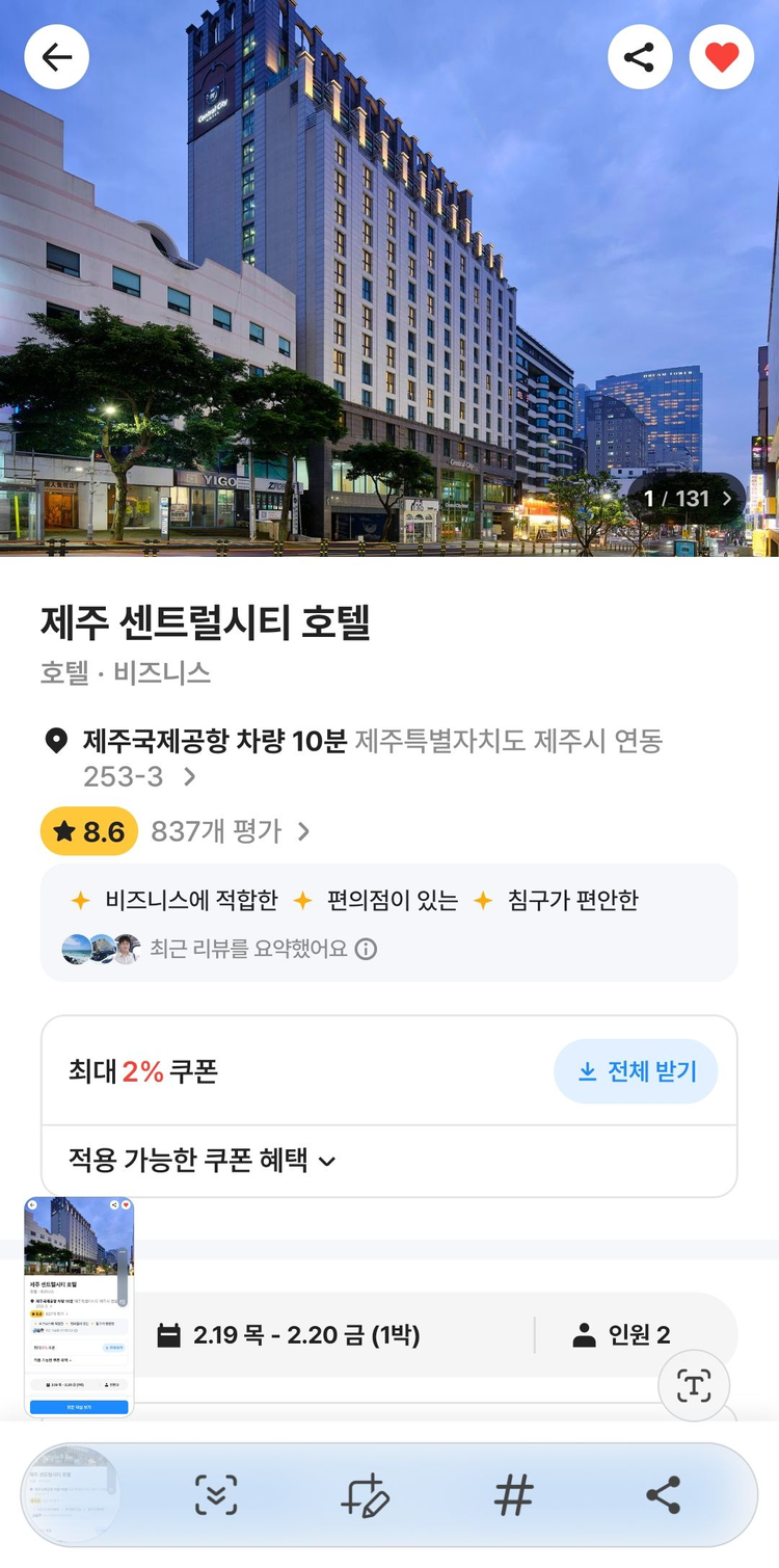 개인정보(거래정보)를 주고받는 행위는 사기에 노출될 수 있으므로 즉시 중고나라로 신고해 주세요제주 호텔 숙박 예약 양도합니다. 깨끗한 상태의 숙박권으로 제주 여행 계획 있으신 분께 추천드려요!