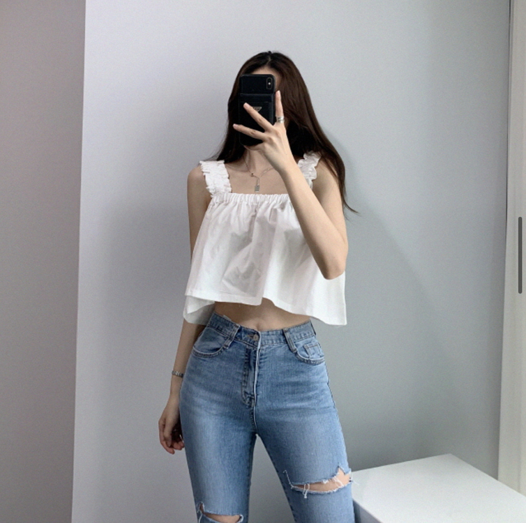 프릴 크롭 블라우스 뷔스티에 여름에 입기 좋은 흰색 크롭 블라우스입니다 프릴 디테일이 있어서 여성스러워 보이고 예뻐요 청바지나 스커트에 코디해서 입으면 좋습니다 상태 새상품 판매가 6,000원