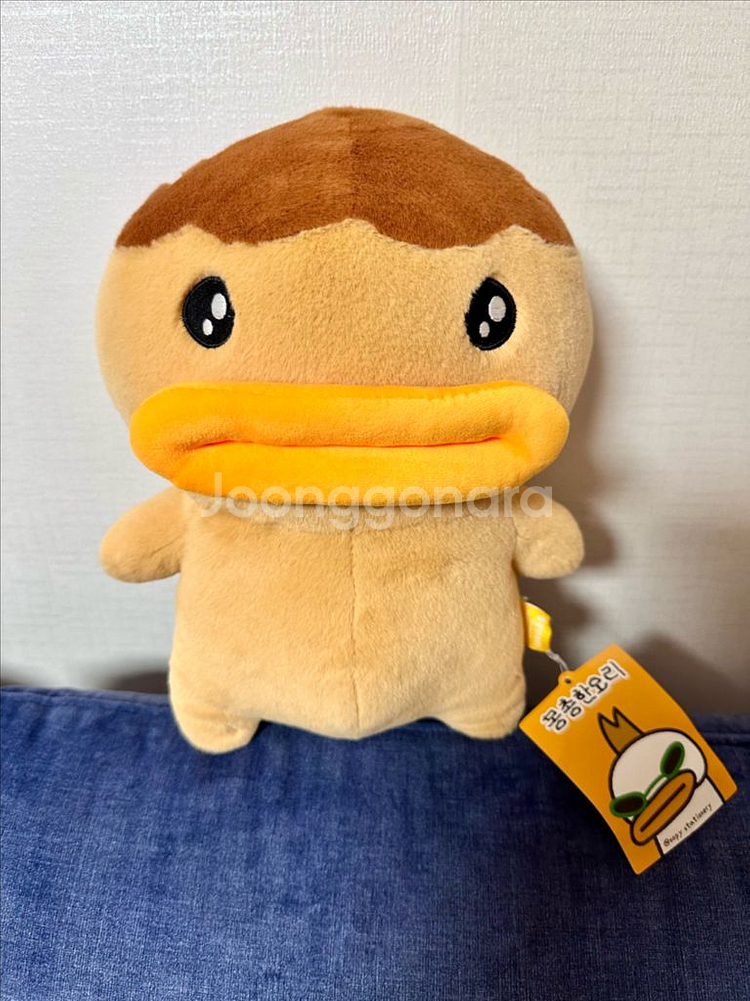 귀여운 몽총한 오리 인형입니다. 머리 위에 타코야끼 토핑이 올라간 디자인이 너무 귀여워요^^ 부드러운 재질로 촉감이 좋습니다. 택달린 새상품입니다.
