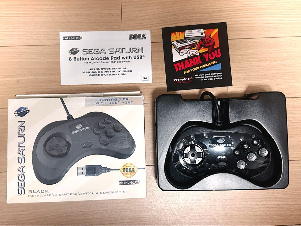 작년에 아마존에서 구입한 레트로비트 세가 새턴 복각 USB 컨트롤러 판매합니다. 예전 새턴 컨트롤러를 세가 정식 라이센스로 그대로 재현한 컨트롤러로 PC, 맥, 스위치, PS3, 세가 새턴 미니 등에 호환됩니다. 십자키랑 6버튼이 격투게임이나 레트로 아케이드 게임하기에 너무 좋다 하여 호기심에 구입했는데 개봉하여 구경하고 한번도 사용하지 않았습니다. 컨트롤러 표면 비닐도 안 뗐습니다. 현재 아마존에서도 품절인지 구할 수 없네요. 송파역 근처 헬리오시티에서 직거래하거나 택비 4,000원 추가하시면 편의점택배 보내드립니다. 연락주세요.