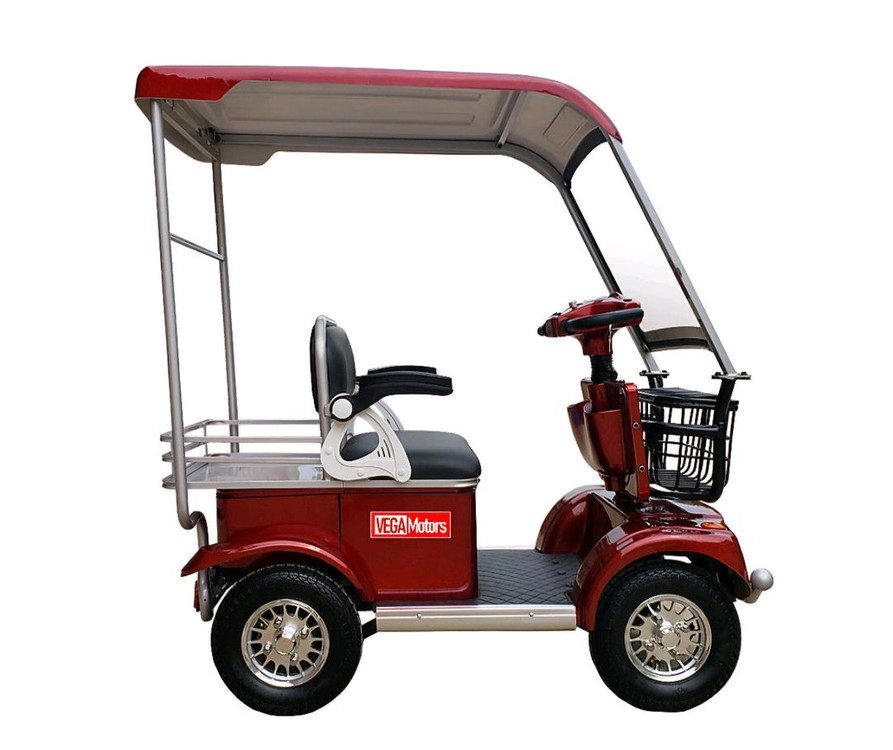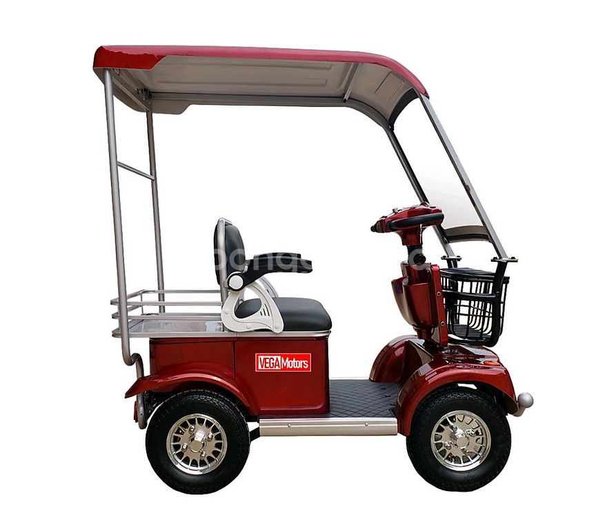 어르신용 VEGA Motors T530r 전동 스쿠터입니다 빨간색이고, 앞쪽에 바구니가 달려있어 편리합니다 뒤쪽에는 짐칸이 있어서 짐을 싣기 좋습니다 1년정도 사용했습니다