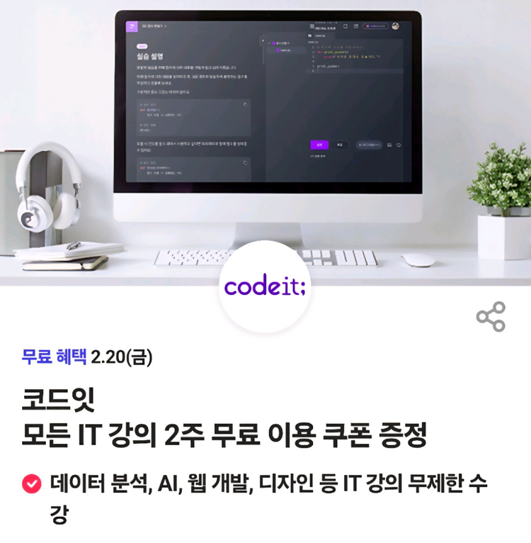 코드잇 모든 IT 강의 2주 무료 이용 쿠폰