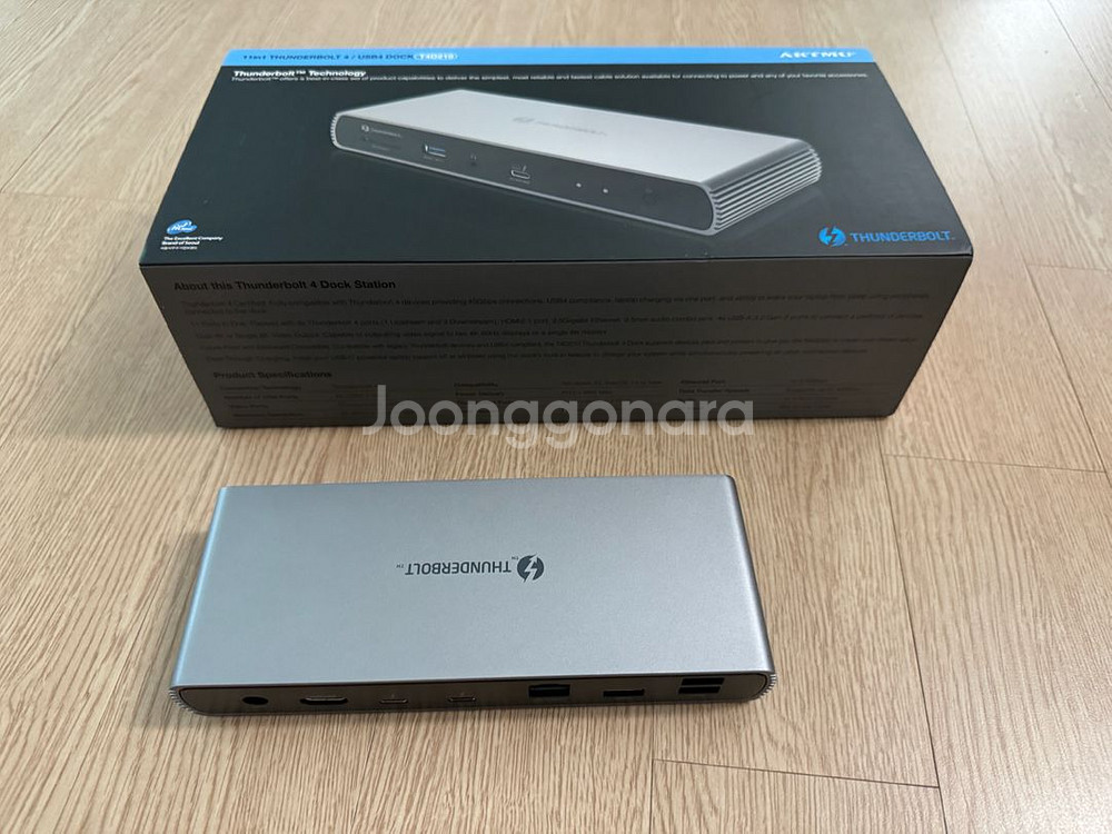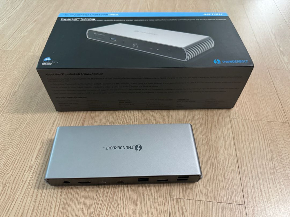 아트뮤 썬더볼트4 도킹스테이션 T4D210입니다 풀박스 구성이고 추가로 썬더볼트4 1m 케이블도 같이 드립니다