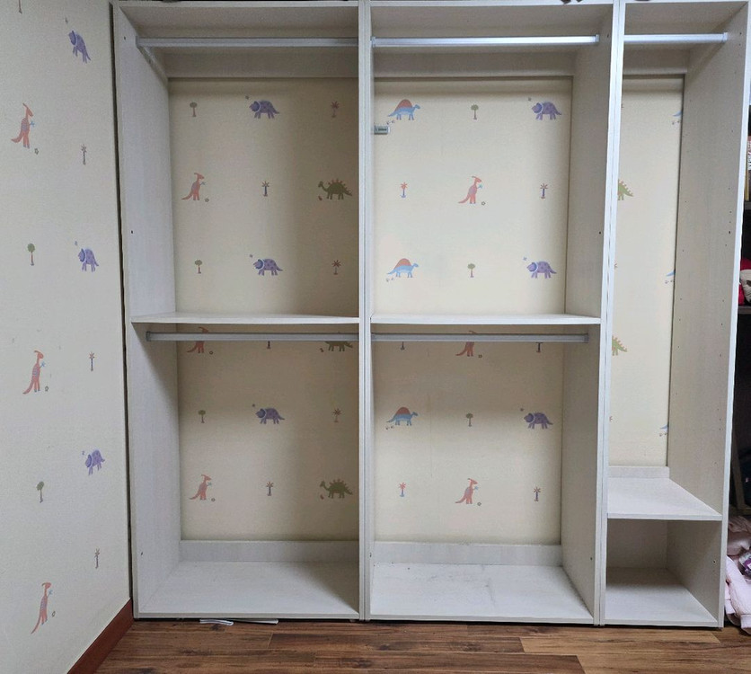 리바트 시스템 행거 드레스룸 2800 옷장입니다 모델명은 L-FH15B78FA입니다 사이즈는 780x395x2021mm입니다 파티클보드 재질입니다. 최근까지 잘사용하여 상태 좋습니다. (드레스룸있는집으로 이사로 인해 어쩔수 없이처분합니다) 구매 당시 최고급형모델이었습니다. 기본형 780 3개(사진에 2개지만 포장1개 더 있습니다.) 코디용 390 1개 총 넓이 대략 2800입니다. 드레스룸 이전설치 업체 또는 용달 섭외하시어 가져가시면 될것같습니다. 미리가져가셔도 되며 2.26(목) 오전에 1층에 내려드릴수 있습니다. 연락처 01099771957 유사제품 참고 https://www.hyundailivart.co.kr/p/P200152107?airbridge_referrer=airbridge%3Dtrue%26client_id%3Df47cb91b-ccbc-41de-a369-fdf830d1c61b%26event_uuid%3D865175ce-4189-4f11-af38-e86df1ef7d32%26referrer_timestamp%3D1767229627821%26channel%3Dnaver.performance_da%26campaign%3D929877%26ad_group%3D100014525&utm_source=naver.performance_da&utm_campaign=929877&campaign=929877&ad_group=100014525&mall_pid=P200152107&customparam=%7Btrkcvs%7D&gaid_raw=%7Bandroid_gaid%7D&ifa_raw=%7Bapple_idfa%7D&NaPm=ct%3Dmjuqw3s8%7Cci%3DCnQJkgAAAZt3F1LgAtsnIg%2E%2E01%7Ctr%3Dpmax%7Chk%3Dd320b7365b5225425adc7d053ee41fab7b8f803f%7Cnacn%3DQybCB0Qyqwzs