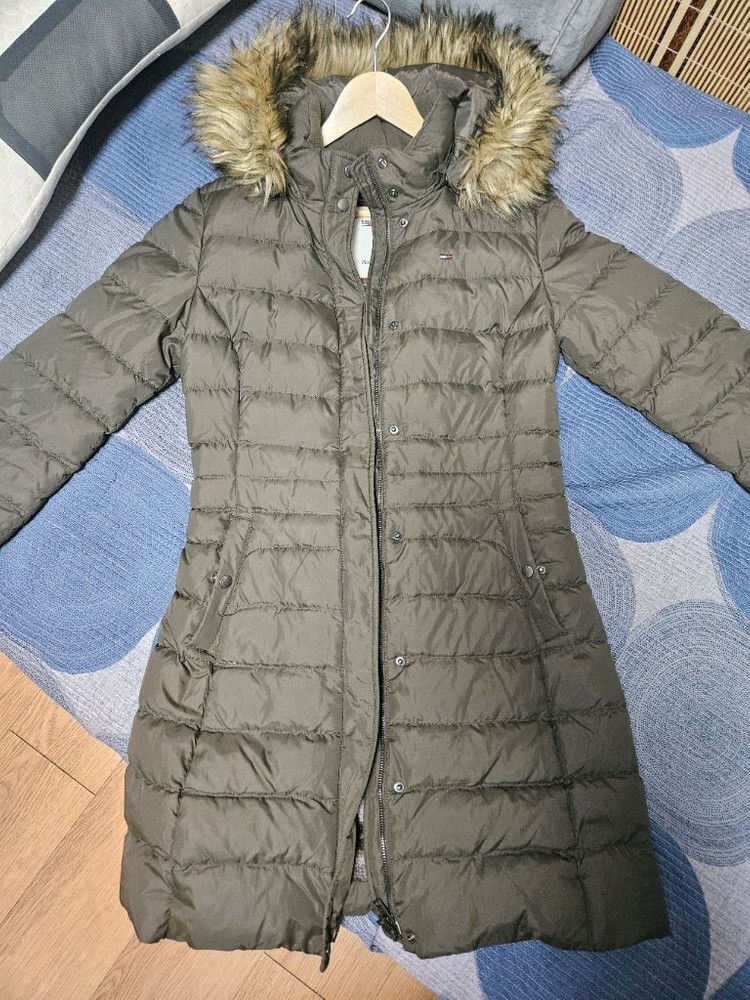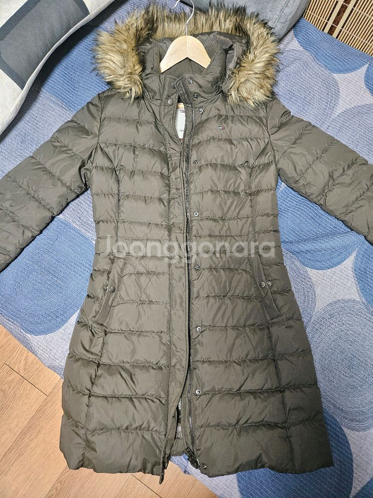 타미힐피거. 여성용 롱패딩이에요. 후드에 퍼 트리밍이 있고 보온성이 좋은 겨울 아우터입니다. 전체적으로 깔끔한 상태로 실용적으로 착용하기 좋아요. 사이즈는 55반까지예요 66반인저한테는 작아서 팔아요 허리라인도들어가서 고급스럽고 여성스럽습니다