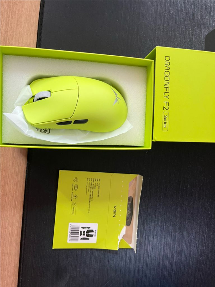 VGN Dragonfly F2 Series 형광색 무선 마우스입니다 - 가벼운 무게로 장시간 사용에도 편안함을 제공합니다 - 빠른 반응 속도로 게임 플레이에 유리합니다 박스에 담겨 있으며, 상태는 좋습니다 국내정품이며 1월구매 무상 a/s1년 개봉만 한 새제품 영수증, 사은품 그립테이프 같이드립니다
