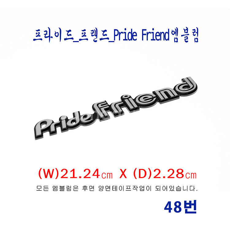 - 제품명: (48번) 프라이드_프랜드_Pride Friend 올드카를 사랑하는 취미 활동의 일환으로 극소량 수작업으로 제작되는 복각 제품입니다. 대량 생산이 불가능한 제작 방식 특성상 주문 후 제작 및 발송까지 최대 1일~3일 정도 소요될 수 있습니다. ■ 주문 및 결제 안내 여러 종류의 상품을 다양한 수량으로 주문을 원하실 경우, 먼저 채팅을 통해 품목과 수량을 안내해 주시기 바랍니다. 상담 후 주문 내용을 확인하여 맞춤형 번개페이 전용 구매창을 별도로 생성해 드립니다. 맞춤 구매창 생성 이후에는 해당 구매창을 통해서만 결제 가능하며, 결제 완료 후 제작 및 발송이 진행됩니다. ■ 배송 안내 주문건당 묶음배송이 가능합니다. 여러 상품을 구매하실 경우 장바구니에 함께 담아 주문해 주시면 택배비 3,400원만 추가 결제하시면 됩니다. 제주 및 도서·산간 지역은 착불 배송으로만 진행됩니다. ※ 해당 지역에서 선불로 결제하실 경우 주문이 취소될 수 있습니다. ■ 수공예 복각 제품 안내 (엠블럼) 본 제품은 복각으로 제작된 수공예 제품으로, 기성 양산 제품과 비교 시 마감이나 완성도가 다소 떨어질 수 있습니다. 순정 제품(스티커 포함)과 치수·디자인이 완전히 동일하지 않을 수 있습니다. 모든 복각 엠블럼은 후면 EVA폼 양면테이프 작업이 되어 있습니다. 모든 복각 엠블럼은 베이스 : 유광 블랙 아크릴 / 글자 : 회색 무광 포맥스로 제작되었습니다. ※ 일부 제품은 포인트로 컬러 포맥스 또는 도색이 적용됩니다. 레이저 가공 특성상 그을음 흔적이 남아 있을 수 있습니다. 모든 복각 엠블럼은 아크릴 전용 본드로 고정 작업되며, 제작 특성상 일부 본드 자국이 보일 수 있습니다. 모니터 환경에 따라 실제 제품과 색상 차이가 발생할 수 있습니다. ■ 내구성 관련 유의사항 [마즈다 121] / [프라이드 베타] / [얇은 외곽 테두리] 등 글자 크기나 형태가 매우 세밀하게 제작된 엠블럼의 경우, 본드 마감 면적이 극히 작아 외부 충격이나 환경 요인에 의해 글자 들뜸 또는 파손이 발생할 수 있습니다. 구매 및 장착 시 이 점을 반드시 유의해 주시기 바랍니다. ※ 분실 보완 안내 엠블럼 중 포맥스 글꼴(문자·형태) 사용 중 탈락 또는 분실이 발생한 경우, 해당 사진을 보내주시면 1회에 한하여 분실된 글자(또는 형태) 부분을 무상으로 추가 발송해 드립니다. (※ 택배비는 착불 처리됩니다.) ■ 스티커 제품 안내 모든 스티커는 단순 스캔 방식이 아닌, 실물 샘플을 기반으로 디자인을 최대한 복원한 후 CAD 도안 작업과 그래픽 후가공을 거쳐 고해상도로 제작됩니다. 출력은 전문 스티커 제작 업체에 별도 의뢰하여 진행되며, 완성도와 내구성을 고려한 공정으로 제작하고 있습니다. 스티커는 각각 낱장으로 재단되어 배송될 수 있습니다. 유포 스티커 또는 투명 스티커 용지를 사용하여 물에 강하며, 유광 또는 무광 코팅을 추가 적용하였습니다. 반칼 작업이 되어 있어 바로 떼어 사용하실 수 있습니다. 모니터 환경에 따라 실제 제품과 색상 차이가 발생할 수 있습니다. #올드카 #올드카엠블럼 #리스토어 #90년대 #골동품 #80년대 #옛날 #옛날자동차 #복각엠블럼 #올드카스티커 #올드카부품 #옛날차스티커 #기아산업 #굴뚝기아 #각그랜져 #프라이드 #갤로퍼 #포니 #PRIDE