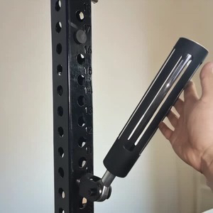 9.86mm(볼트 외경) ~ 29.6mm(너트 외경) 사이의 타공이 뚫린 랙이면 장착 가능한 랜드마인입니다. 삽입구멍이 50.5mm라서 중량봉 전용이고 플라스틱이 덧대어져 있어서 바벨 도장이 까질일은 없습니다. 1회만 사용했구 별다른 하자 없습니다 별도로 포함된 자석볼트를 다른 타공에 설치하면 사용을 안할때 수직으로 보관도 가능합니다 네고, 운포불가 환불, 교환불가 이점 유의하고 거래 부탁드려요