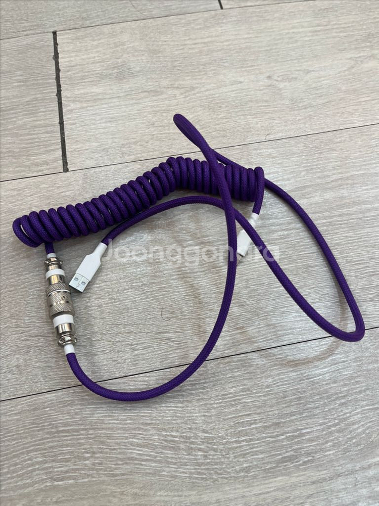기계식 키보드에 연결하는 usb c to a 코일 케이블입니다 색상은 퍼플이며, 항공 케이블 스타일입니다 키보드에 포인트를 줄 수 있습니다
