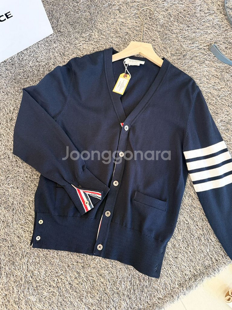 톰브라운 네이비 가디건입니다 팔 부분에 4줄 흰색 스트라이프 디자인이 특징입니다 1사이즈(여자 S,M 사이즈) 3사이즈(남자 L사이즈) 커플룩으로도 추천 드려요