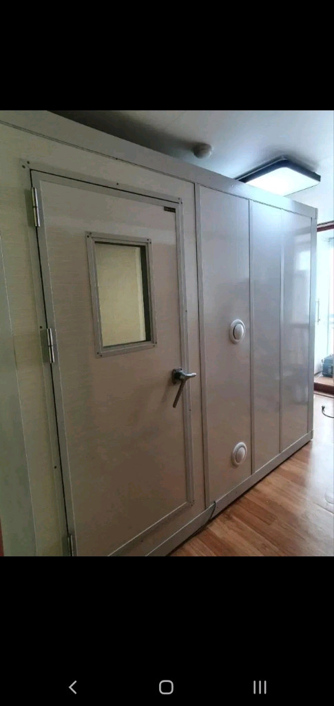 26x15 방음부스 드림디자인 슈퍼싱글 신형모델입니다 상세크기는 이렇게 됩니다 외부 2600(출입문쪽) x 1515 2165높이 내부 2425(출입문쪽) x 1340 2000높이 방음부스 판매가격 - 200만원에서 180만원으로 내림 이전설치비용은 별도 80만원 (수도권내 이전설치비용입니다. 거리가 멀어지거나 3층이상이고 엘리베이터를 이용할수 없는 경우 추가비용이 발생합니다) 전제적으로 상태좋지만 에어컨을 설치했던쪽 벽면과 책상을 두었던곳쪽에 얼룩이 있습니다. 그리고 신경쓰지 않고 보면 모르지만 자세히보면 출입문쪽에 필름 갈라짐? 이 있습니다. 게시글에 자세한 사진 보고 확인 부탁드립니다. 크기와 등급에 비해 저렴하게 판매합니다. 공일공 팔삼일일오구육삼 이나 채팅으로 문의주시면 친절하게 상담해드릴게요 감사합니다!!