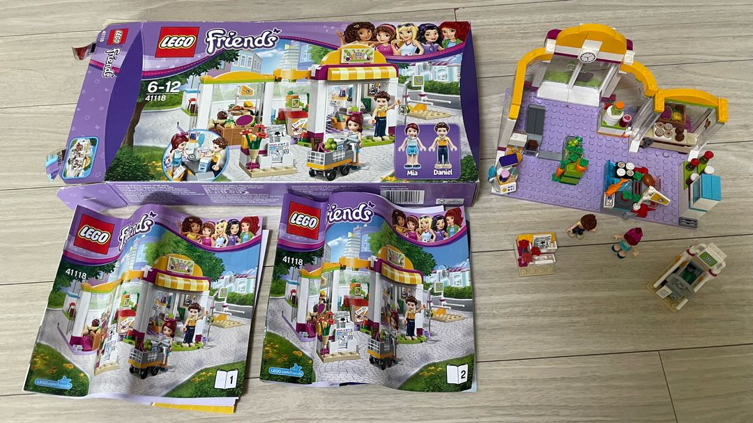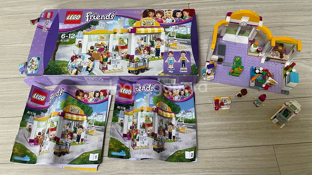 레고 프렌즈 41118 하트레이크 슈퍼마켓 판매합니다. 사진에 보이는 것과 같이 설명서 포함되어 있습니다. 미아와 다니엘 미니 피규어도 있습니다. 상자, 설명서, 구성품 다 있습니다. 책상위에 보관만하여서 먼지만 조금 있습니다.