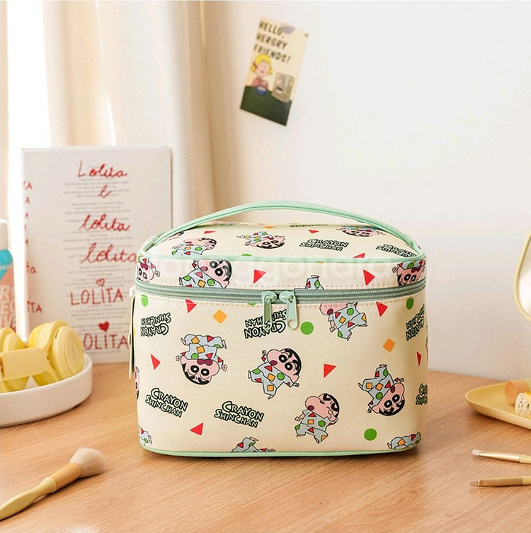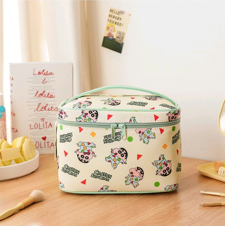 귀여운 짱구 대용량, 여행용 파우치 입니다 화장품 가방으로도 사용 가능합니다! 손잡이도 달려 있어서 들고 다니기 편해요!! 수납공간도 넓다보니 아이들 여행가방으로 강추 합니다 디테일 고급스럽습니다 허접한 싼 가방 아닙니다 아이들 선물로 강추합니다