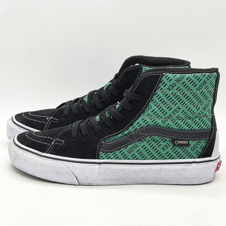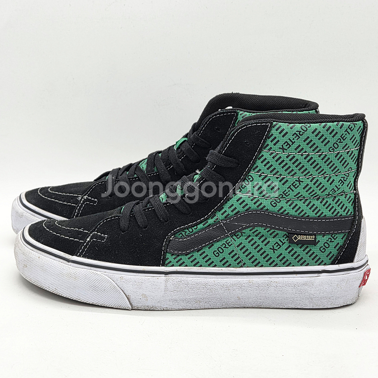 사이즈 270 반스의 프리미엄 라인인 반스 볼트의 스케이트하이 고어텍스 블랙 그린입니다. https://novelship.com/ko-kr/vans-sk8-hi-gore-tex-black-green-billys-tokyo-exclusive-vn-0-a4-p3-hyj-7 빌리스 도쿄에서 독점으로 발매했던 모델이구요, 편안한 착화감과 고어텍스 기능이 만족스러운 슈즈입니다. 자연스러운 사용감외 좋은 수준의 컨디션을 유지중입니다.