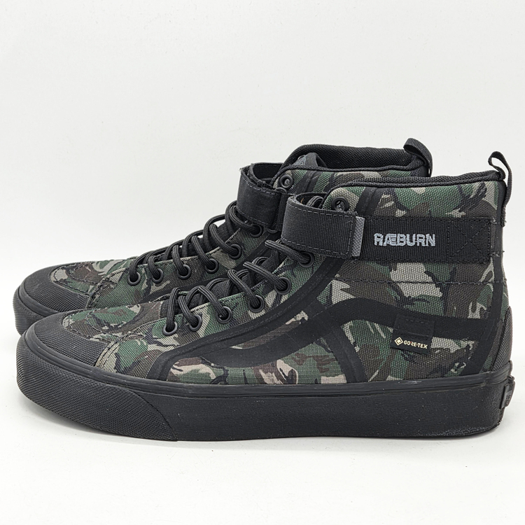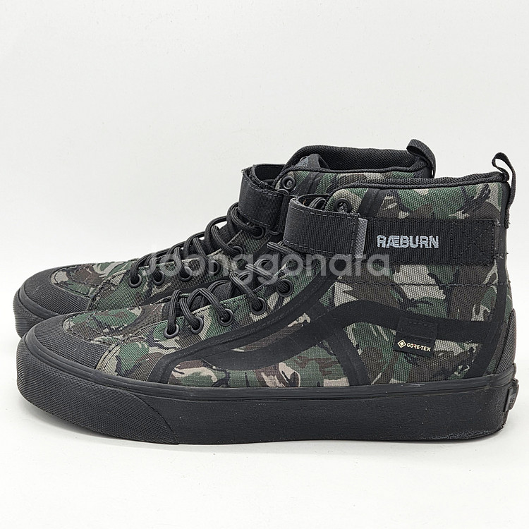 사이즈 280 반스와 디자이너인 크리스토퍼 레번의 콜라보레이션 스케이트 하이 고어텍스 VR3 "카모 모델입니다. https://stockx.com/ko-kr/vans-sk8-hi-gtx-vr3-raeburn-camo 스케이트 하이 형태에 벨크로 디테일, 고어텍스 기능, 카모 패턴등이 만족스러운 슈즈로, 사용감 적은 좋은 수준의 컨디션을 유지중입니다.