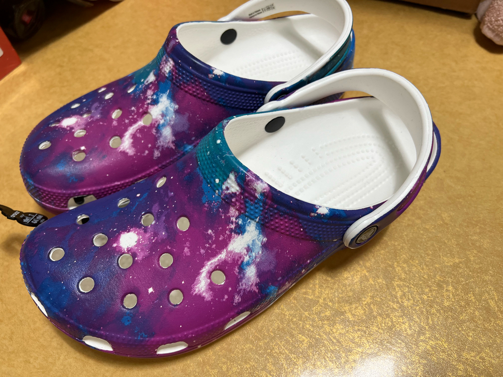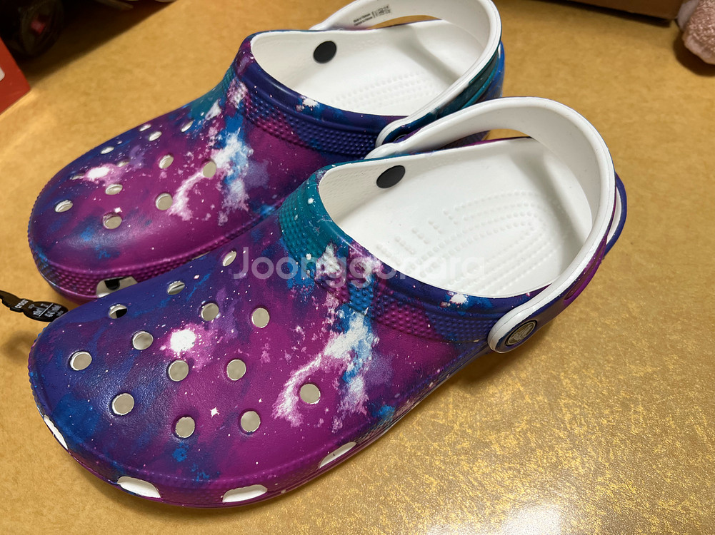 crocs classic out of this world clog 참신하게. 자유롭게. 편안하게. 전 세계에 편안함의 혁명을 탄생시킨 아이코닉한 클로그! 활동성과 편안함으로 날이 갈수록 더욱 사랑에 빠지게 될 슈즈입니다. 크록스 클래식 클로그는 가벼운 무게의 Iconic Crocs Comfort™와 모두에게 어울리는 컬러가 특징이며 편안한 착용감을 지속적으로 선사합니다. 클래식 클로그 디테일: 놀랍도록 가벼운 무게와 착용의 즐거움 물에 닿아도 안전한 소재와 물에 뜨는 가벼운 무게 통기성을 향상하고 물기와 먼지를 배출해주는 통풍구 간편한 세척과 빠른 건조 발을 단단히 고정시키는 피벗식 힐 스트랩 Jibbitz™ 참으로 맞춤형 장식 가능 Iconic Crocs Comfort™: 가벼움. 유연함. 360도의 편안함. 정품 새상품
