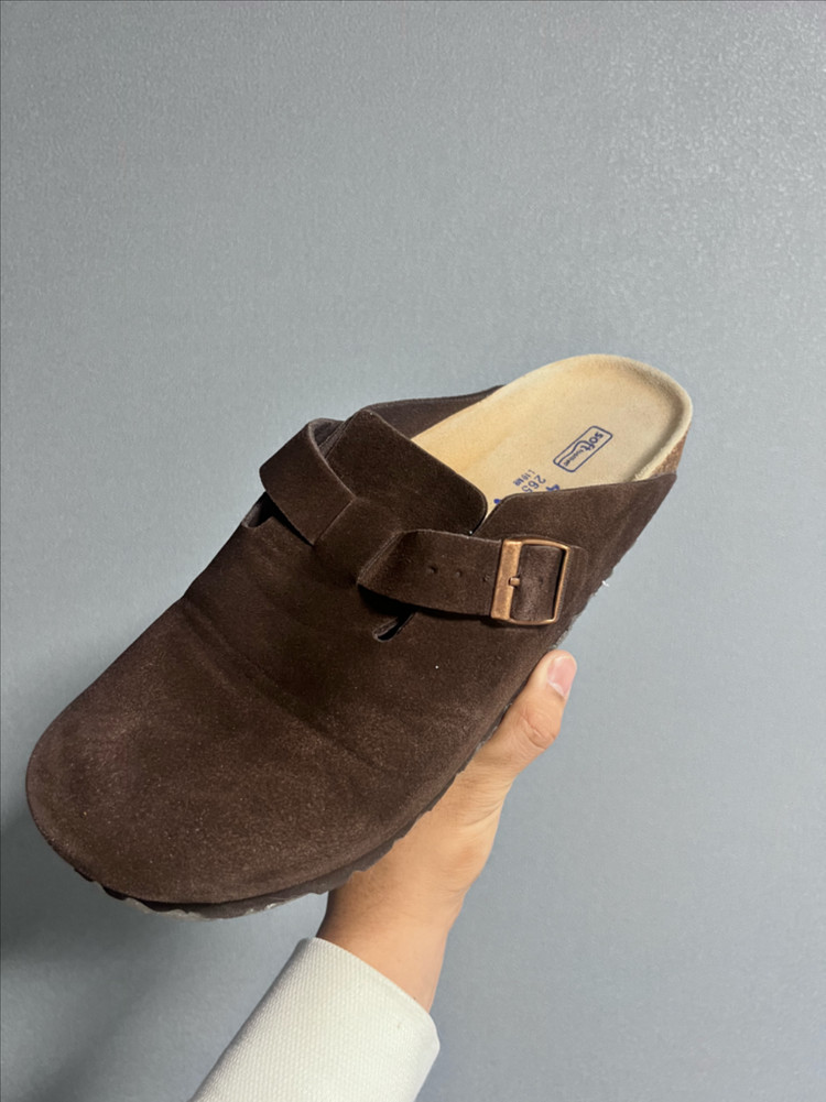 안녕하세요! 버켄스탁 보스턴 모카색상 265mm(좁은 발볼)입니다. 전에 신던것이 다 닳아 구매하였고, 당시 레귤러 발볼이었는데 내로우 발볼과 큰 차이가 있음을 인지하지 못하고 구매하였습니다. 그래서 많이 신지 못하고 올리게 되었습니다. 제 생각에 발볼이 없으신 265mm분이나 발볼이 있으나 평소에 255-260mm신으시는 분이 잘 맞으실 것 같습니다. 타우페보다 고급지고 유니크한 색상이라 생각됩니다. 박스를 버려 새상품에 가까우나 저렴히 판매합니다.
