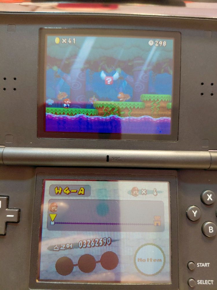 휴대용 게임기 본체와 슈퍼슈퍼 캐릭터 게임이 함께 있어요. 정상 작동하는 중고 제품으로 게임도 잘 실행됩니다. 휴대용 게임기로 추억의 게임을 즐기세요! 아답터 미포함입니다