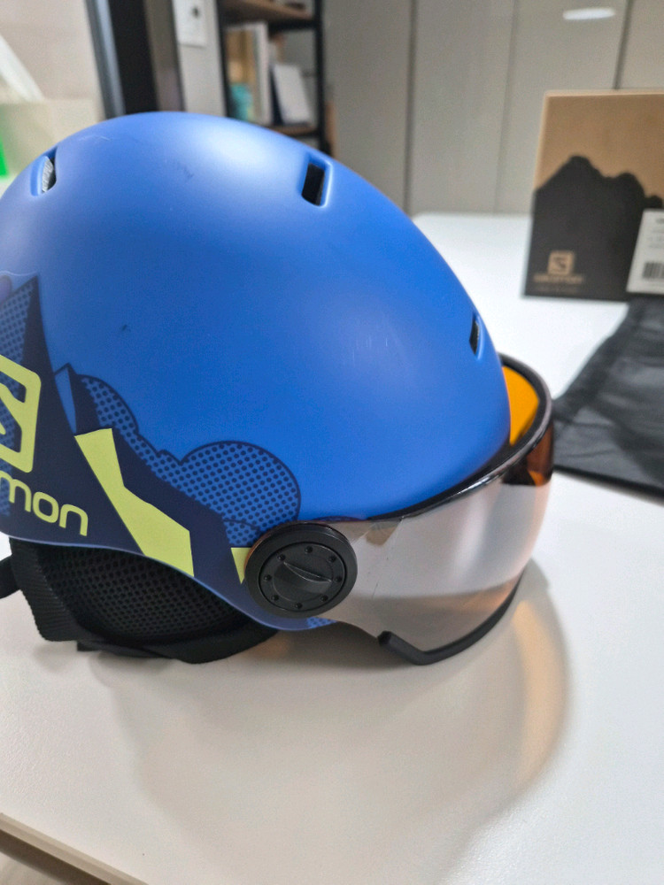 살로몬 키즈 스키 바이저 헬멧 Grom Visor M 사이즈 판매합니다 - 사이즈는 53-56cm입니다 - 헬멧은 충격 흡수 기능이 뛰어나 안전하게 스키를 즐길 수 있습니다 - 통풍 기능도 갖춰 쾌적하게 착용 가능합니다 - 윗면에 약간의 긁힘이 있지만, 전체적으로 양호한 상태입니다(사진 참고) - 박스와 더스트백 함께 드립니다 - 3년전 구매하여 1년간 2회 착용하였습니다