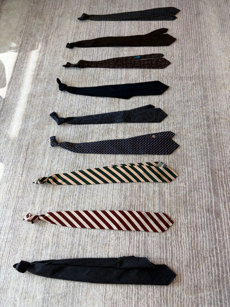 [며칠간만 기간 한정 네고합니다] *제가 팔고있는 것 어느것이든 두개 이상 사시면 각각 10%씩 네고 해드립니다. <<타이는 꼭 개별 문의를 주시고 구매해주세요>> 1) 프랑코미누치 스포데라토 세븐폴드 타이 : 20만원 최고급 타이입니다. 타이유어타이의 수장이자 타이 장인 프랑코 미누치의 이름을 내건 타이로 최고급 타이메이드 기술인 스포데라토 세븐폴드입니다. 사진에서도 보이듯 마치 스카프를 맨듯이 유려하게 물결치듯 스타일링 할 수 있는게 장점입니다. 이태리메이드, 핸드메이드입니다. https://m.blog.naver.com/yuntaeman/80120027640 2) 프랑코미누치 레지멘탈 레드 타이 : 15만원 최고급 타이입니다. 타이유어타이의 수장이자 타이 장인 프랑코 미누치의 이름을 내건 타이로 심이 없이 실크로 만들어져 딤플이 굉장히 이쁘게 잡힙니다. 갤러리아에서 레드 레지멘탈, 그린 레지멘탈 각각 40정도에 구매하였습니다. 이태리메이드, 핸드메이드입니다. https://m.blog.naver.com/yuntaeman/80120027640 3) 프랑코미누치 레지멘탈 그린 타이 : 15만원 최고급 타이입니다. 타이유어타이의 수장이자 타이 장인 프랑코 미누치의 이름을 내건 타이로 심이 없이 실크로 만들어져 딤플이 굉장히 이쁘게 잡힙니다. 갤러리아에서 레드 레지멘탈, 그린 레지멘탈 각각 40정도에 구매하였습니다. 이태리메이드, 핸드메이드입니다. https://m.blog.naver.com/yuntaeman/80120027640 4) 지방시 실크 로고 네이비 타이 : 5만원 지방시 로고가 시크하게 박혀있는 이태리 실크타이로 매우 고급지고 도시적인 느낌을 줍니다. 네이비 바탕에 옐로 패턴이라 어디든 스타일리시하게 잘어울립니다. 실크 느낌이 압도적으로 부들부들하고 곱습니다. 이런건 딤플이 상당히 잘집히죠 5) 에트로 페이즐리 패턴 다크네이비 실크타이 : 7만원 굉장히 멋진 타이입니다. 사실 에트로를 좋아하는 편이 아니지만 명동롯백 쇼윈도에 블랙수트와 코디해놓은걸 보고 바로 들어가서 샀습니다. 굉장히 다크하고 매트한 바탕에 에트로 특유의 페이즐리가 고급스럽게 들어가서 블랙수트나 네이비 수트에 코디하면 타이 하나로 분위기가 정말 멋지게 변합니다. 개인적으로 강추입니다 6) 아르마니 꼴레지오니 블랙 실크타이 : 5만원 아르마니의 최상위 레이블답게 시크힌 블랙 패턴에 부담스럽지 않은 서클 패턴이 들어가있어서 샀습니다.때문에 장점이라면 수트 앞섬을 잠굴때는 솔리드 블랙타이로, 셔츠만 입었을 때나 앞섬을 풀때는 절제된 서클 패턴이 보여 자리에 따라 조절이 가능해서 좋았습니다. 7) 구찌 빈티지 슬림 페이즐리 로고 실크 타이 : 5만원 올드 구찌타이입니다. 올드하지만 패턴과 만듦새는 전혀 올드하지 않은 타이로 브라운 바탕에 정교한 페이즐리문양이 일품이며, 타이 전면 오른쪽하단 구찌 간치니 로고, 소감쪽 구찌로고 등이 문득문득보여 굉장히 고급스럽습니다. 대검 끝쪽에 살짝 헤짐이 존재하지만 슬림타이임에도 딤플이 잘집히고 패턴이 너무 멋진데다 구찌로고들도 이뻐서 개인 소장하는 타이였습니다. 8) 휴고보스 브라운 솔리드 타이 : 4만원 하나 구비해 놓으면 정말 좋은 브라운 솔리드 타이 입니다. 의외로 브라운 솔리드 타이를 가지고 계신 분들이 없는데 수트와 상성 너무 좋습니다. 조직감이 있는 솔리드 원단이라 웬만한 수트들과 궁합이 다 좋습니다. 9) 브로이어 다크그린 패턴 실크 타이 : 3만원 프랑스 남성복 전문브랜드 브로이어의 타이입니다. 사실 큰 기대 안하고 샀었는데 다크그린색과 특유의 패턴이 생각보다 수트들과의 조합이 좋아 남겨놨던 전투용 타이입니다. - >> 꼭 읽어 보시고 거래 부탁드려요:) << - 일정상 택배거래만 합니다(직거래X) - 제가 확인하지 못한 오염/하자 있을수 있습니다 - 아마추어 실측치이므로 오차 감안해주세요 - 개인거래/중고거래 특성상 사이즈, 개인변심, 개인사정 등 어떠한 사유로도 교환/환불 불가합니다. 예민한 분은 구매 자제부탁드립니다.