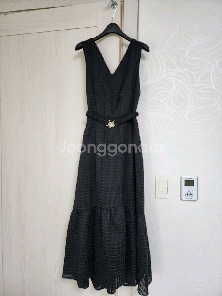 고급스러운 체크 패턴의 원피스예요. V넥 디자인과 허리 벨트가 포인트이고, 전체적으로 상태가 양호해 보입니다. 클래식하면서도 세련된 느낌의 아이템이에요. 블라우스나 티셔츠 다 활용가능하고 무엇보다도 핏이 굉장히 이뻐요