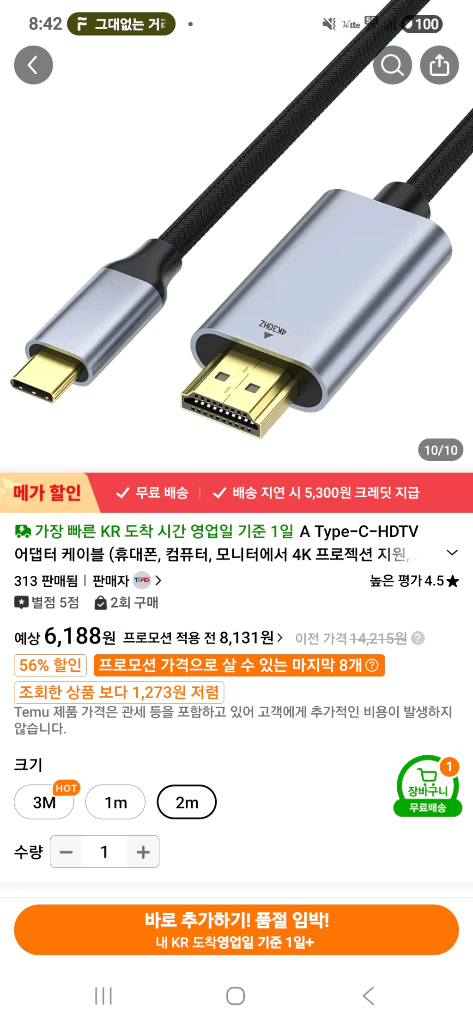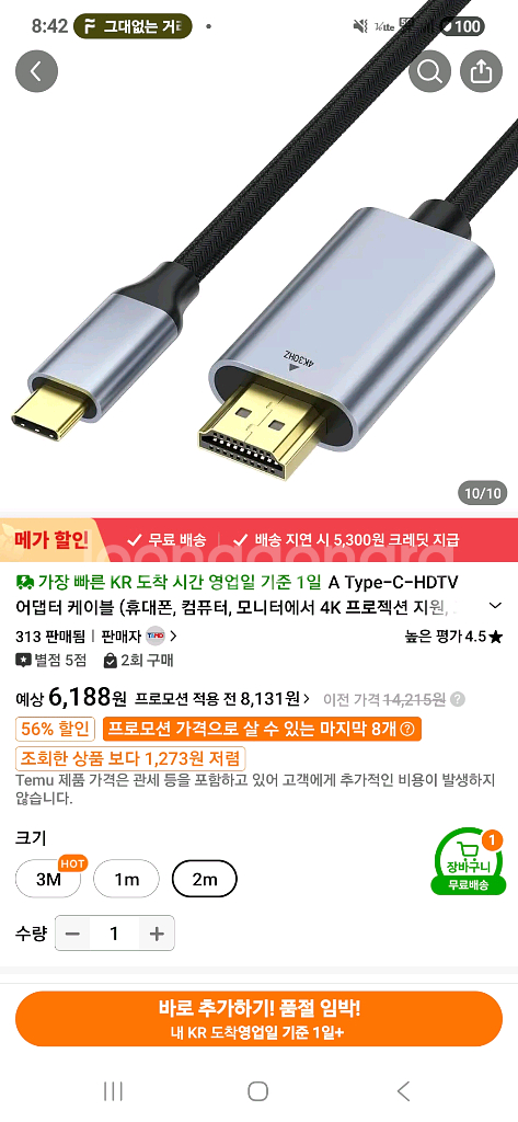 ![새상품/2m] C to HDMI 4K 케이블 (폰-TV 연결)--1](https://img2.joongna.com/media/original/2026/02/20/17715885329966GL_vaHN5.jpg?impolicy=resize)