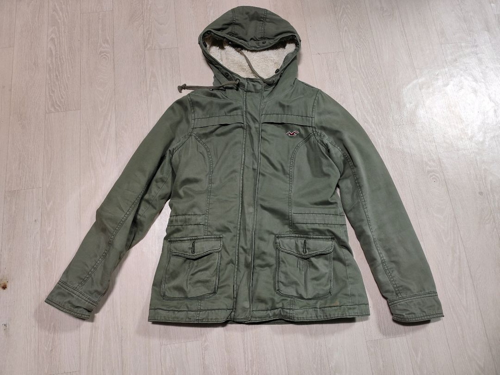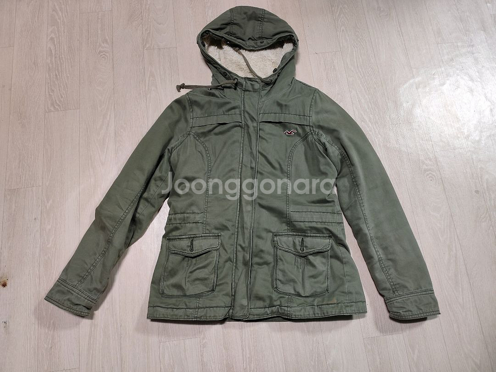 홀리스터 카키색 야상 여자 L사이즈입니다 지퍼를 잠그고 겨드랑이 사이를 잰 값인 가슴 반품 약 50센치 총장 약 70센치입니다 안감은 양털로 되어있어 따뜻합니다 후드 달려있습니다 지퍼에도 홀리스터 로고가 각인이 되어 있어요 컨디션 좋아요