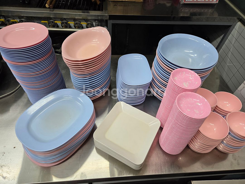 업소용으로 사용하던 식기세트예요. 접시와 그릇들이 대량으로 있어서 사용감은 있지만 아직 쓸만한 상태입니다.