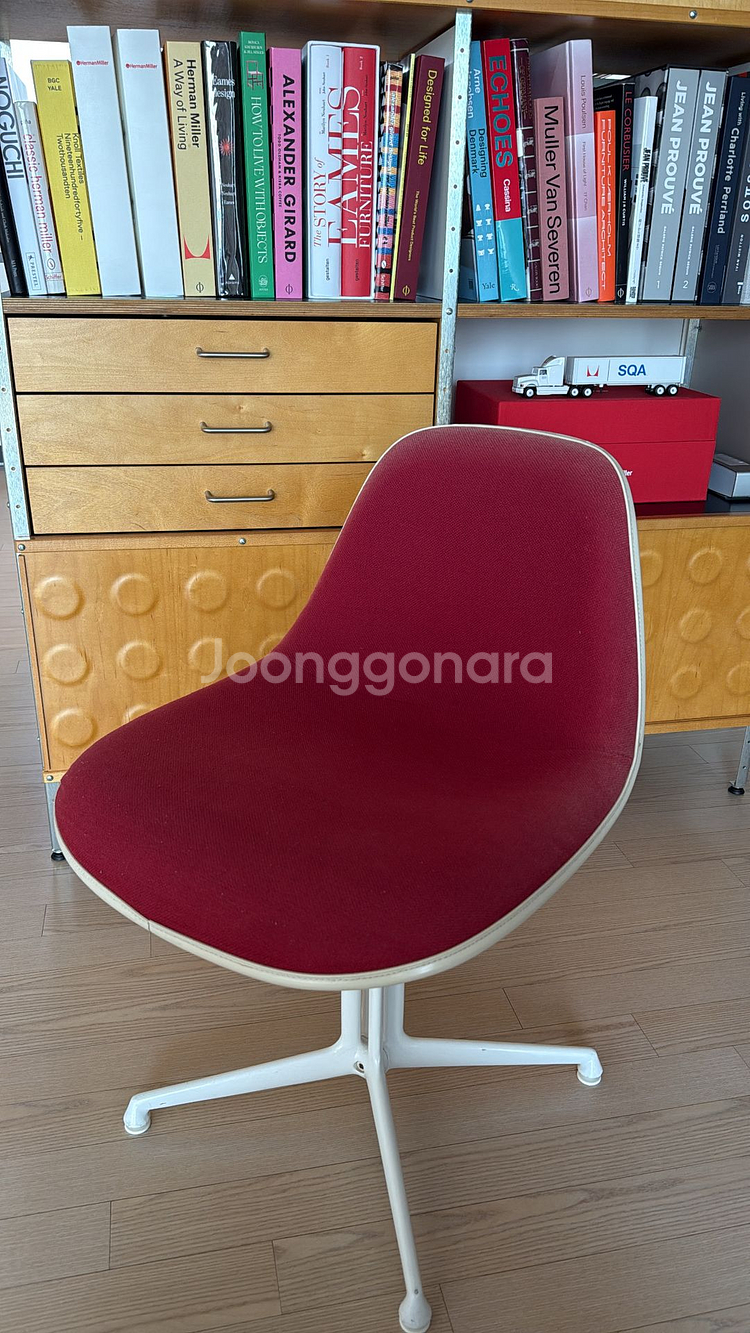 개인적으로 빈티지 가구를 좋아해 하나둘 모아오던 것들인데, 욕심이 많아지다 보니 공간에 비해 컬렉션이 조금 많아졌고, 이제는 정말 좋아해 주실 분께 하나씩 보내려 합니다. 정말 아끼며 사용했고, 생활 기스와 어느정도 세월의 흔적은 있지만 빈티지 임에도 아주 양호합니다. 임스부부가 뉴욕의 La Fonda del Sol 을 위해 디자인한 모델로, 테이블 라인을 해치지 않도록 등받이를 낮게 설계한 모델입니다. 일반 임스 사이드체어 보다 등받이가 낮고, 라폰다만의 베이스가 특징입니다. 개인적으로 너무 좋아하지만 임스체어가 많아서 정리해봅니다. 내부 스폰지와 오리지널 패브릭 컨디션은 양호하며 세월에 따른 약간의 색 바램은 있으나, 그 또한 지나온 시간을 보여주는 부분이라 생각합니다. 정기적으로 패브릭 클리닝을 하며 관리해왔습니다.