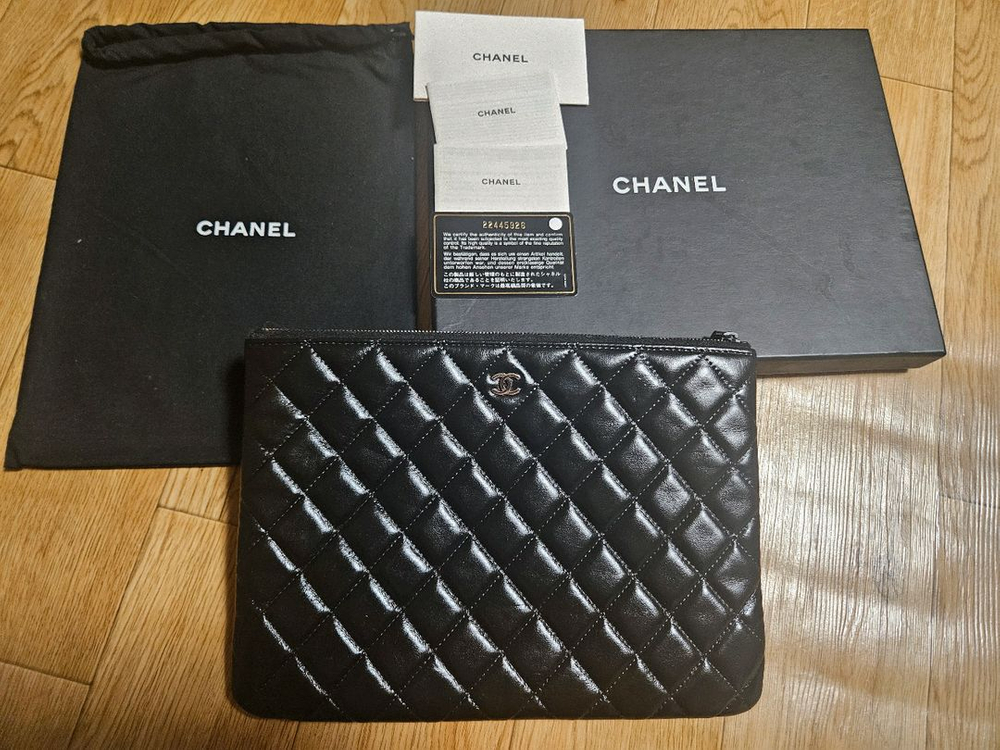 정품 블랙 퀼팅 클러치백이에요. 박스와 더스트백 포함된 완전 세트로 상태도 깔끔합니다. 클래식한 디자인으로 오래 사용하기 좋아요. - 시리얼 넘버는 22445***입니다 - 구성품은 박스, 더스트백, 보증서 포함입니다 -사용감이 적고 명품케어 받은 제품입니다